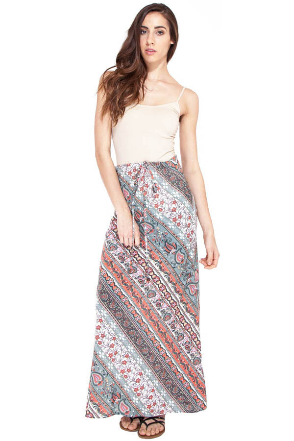 Spring Time Paisely Drawstring Pencil Skirt