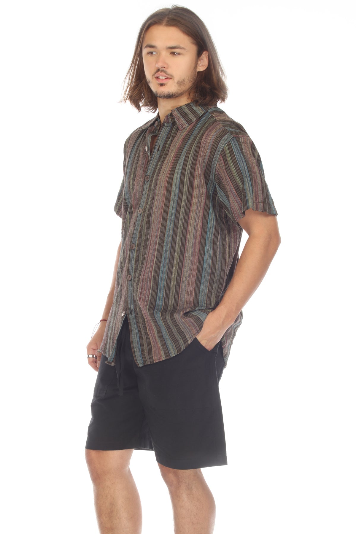Stripe Button Down Mens Short Sleeve Shirt